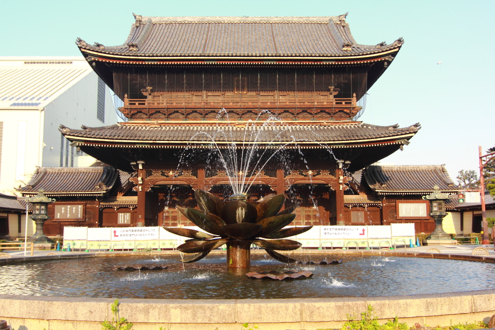 要去五条站坐車時經過東本願寺前的蓮花噴池