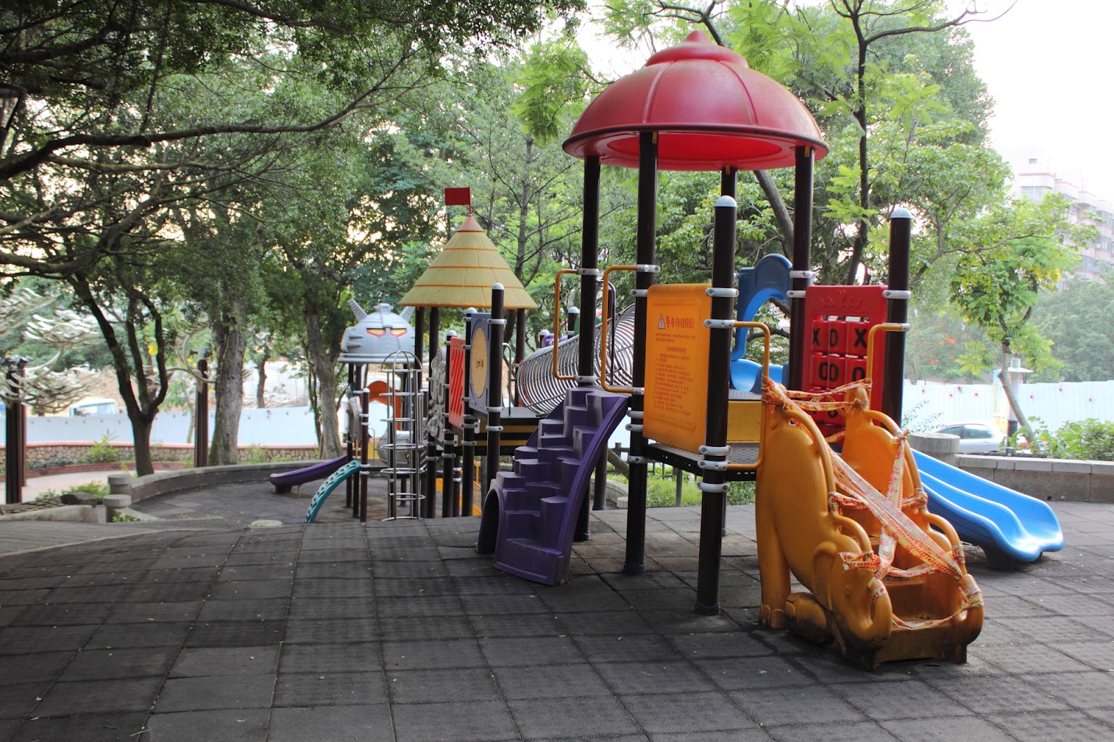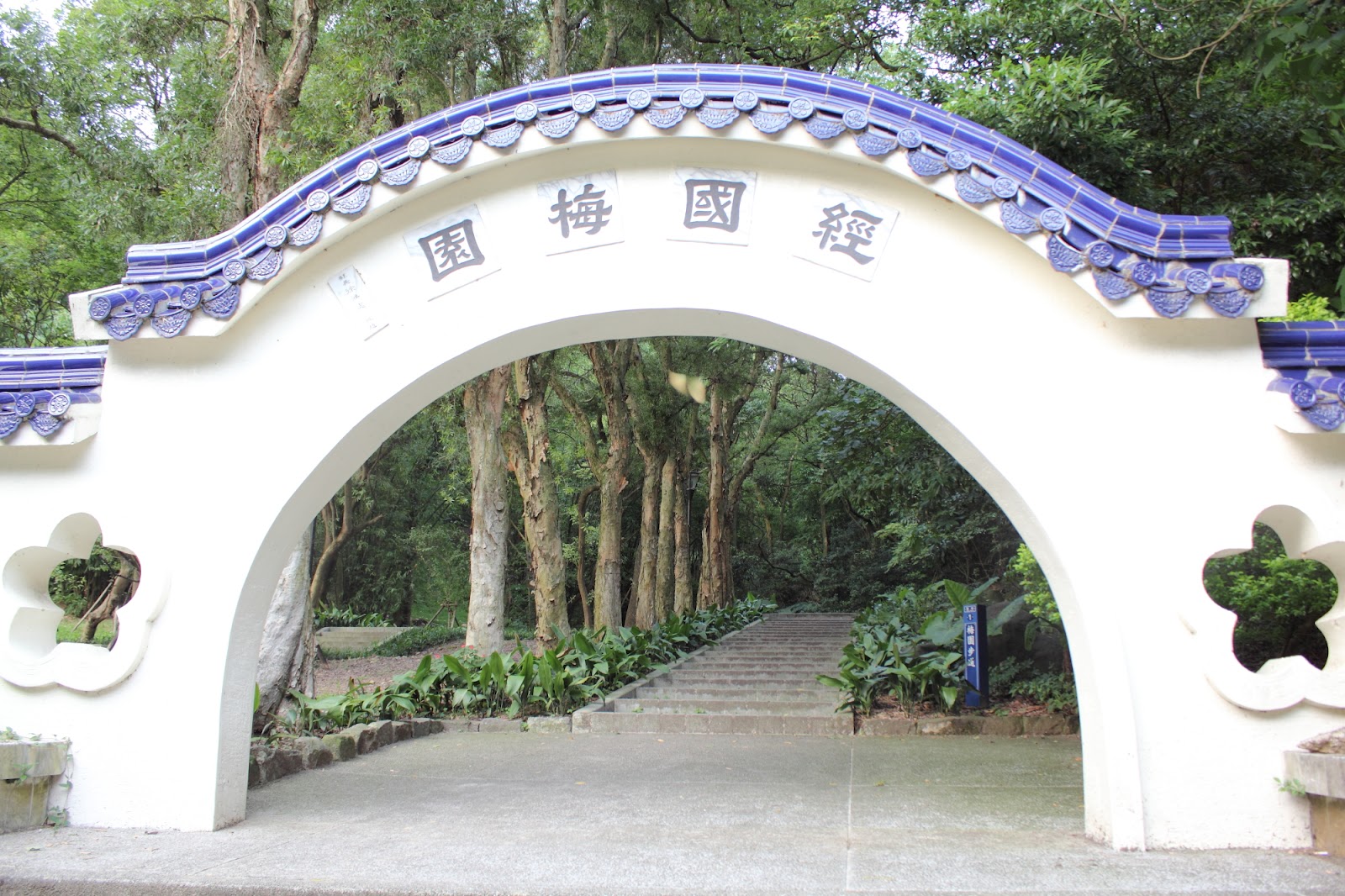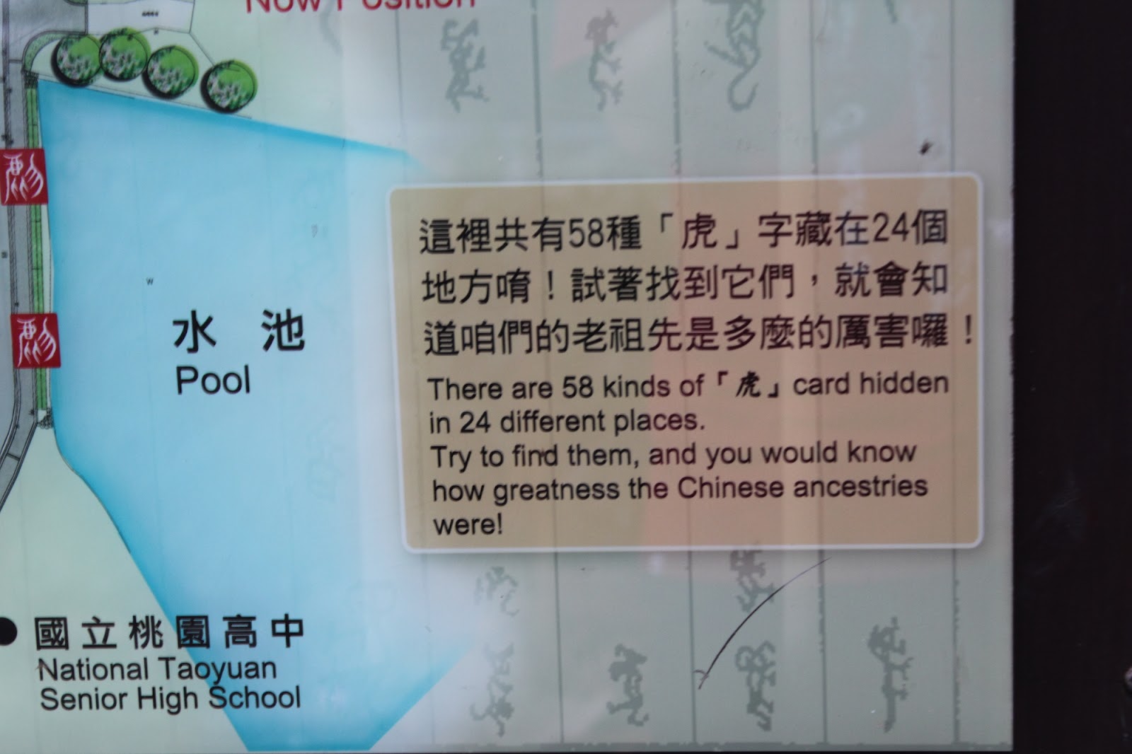 從桃園高中的圍牆走一下就能看到虎頭山風景區的招牌