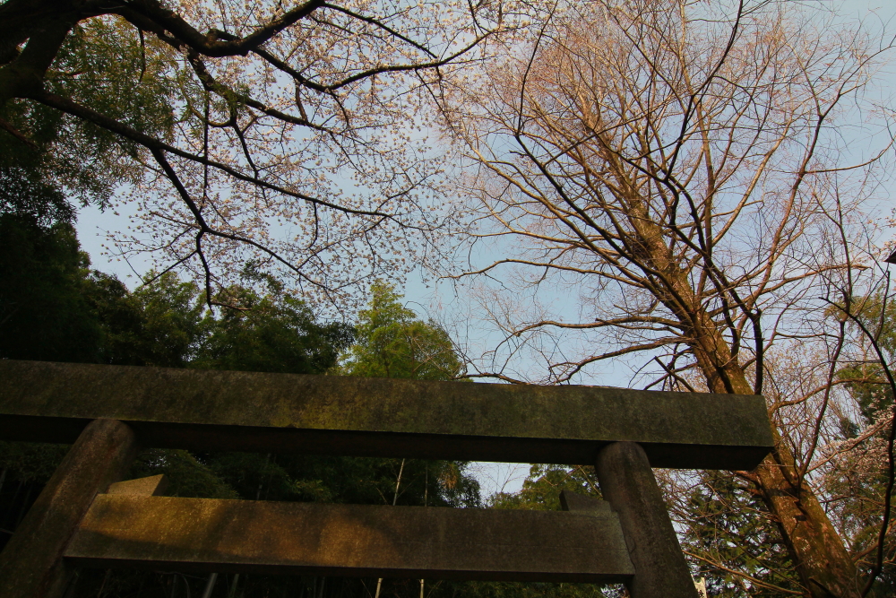 從門口望出去也是鳥居,旁邊也有櫻花但不多,櫻花不是這邊的重點