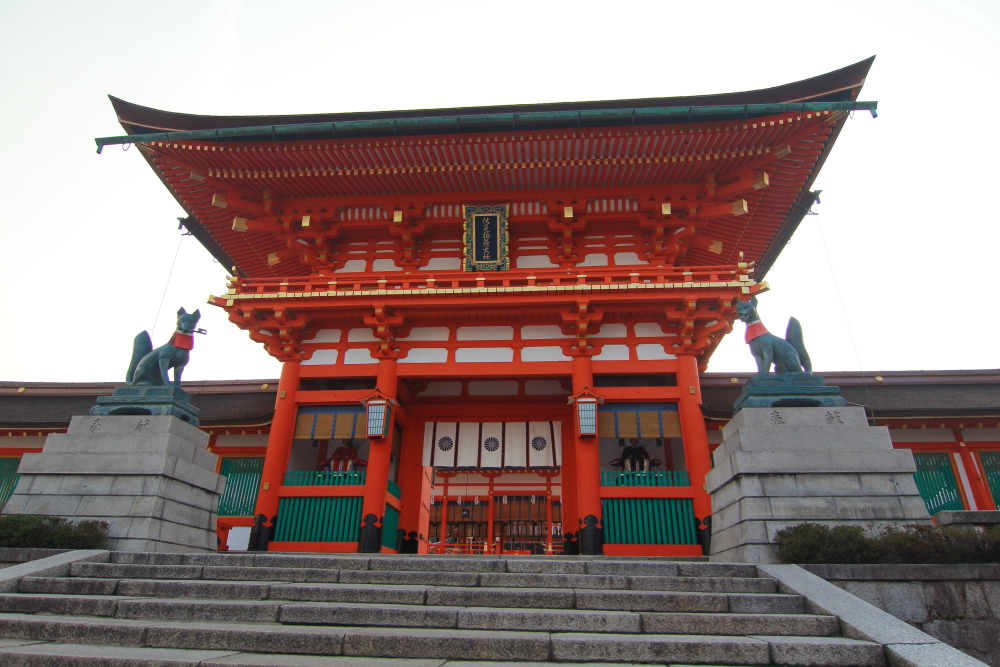 伏見稻荷大社門口 看門的是二隻狐狸神