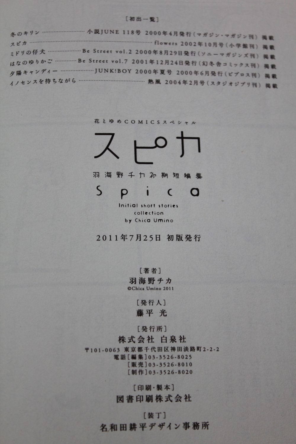 月刊 還週刊不知道,看到內首有這本Spica~羽海野千花初期短篇集廣告