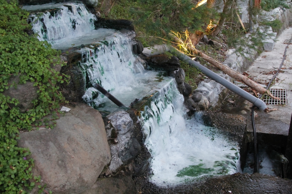 溫泉出水口這邊有白白的溫泉不知什麼東東
