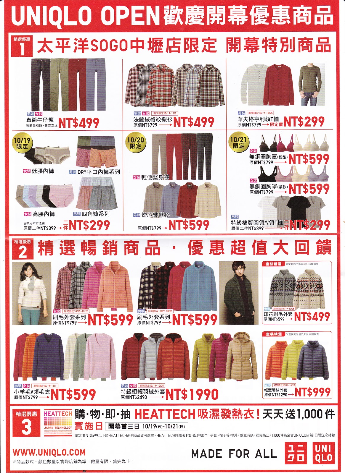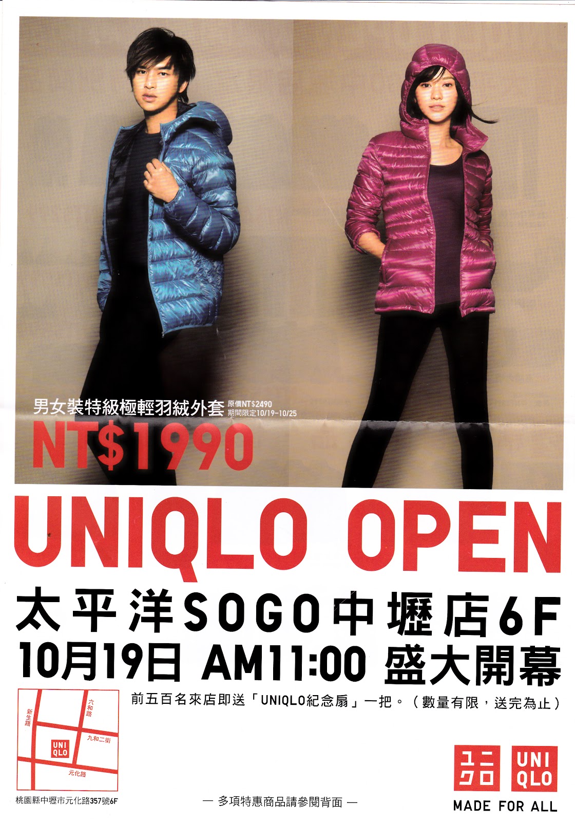 就在今天2012/10/19中壢也有uniqlo了<br />開在sogo 6f<br />今天去sogo<br /><br /><h3 class="r" style="background-color: white; margin: 0px; overflow: hidden; padding: 0px; text-overflow: ellipsis;"><span style="color: #222222; font-family: arial, sans-serif; font-size: small;"><span style="font-weight: normal; white-space: nowrap;">伊士邦運動減肥時一樓還有uniqlo的人在發傳單</span></span></h3><div><span style="color: #222222; font-family: arial, sans-serif; font-size: small;"><span style="font-weight: normal; white-space: nowrap;">就拿了一張</span></span></div><div class="separator" style="clear: both; text-align: center;"><a href="http://4.bp.blogspot.com/-pVkJ48C139A/UIFZboc6qII/AAAAAAAAGYo/c7azjw6pdng/s1600/IMG.jpg" imageanchor="1" style="margin-left: 1em; margin-right: 1em;"><img border="0" height="640" src="http://4.bp.blogspot.com/-pVkJ48C139A/UIFZboc6qII/AAAAAAAAGYo/c7azjw6pdng/s640/IMG.jpg" width="448" /></a></div> 大仁哥 跟陳意涵代言<br /><div class="separator" style="clear: both; text-align: center;"><a href="http://3.bp.blogspot.com/-u-Hdqkvd47Y/UIFcDUWfr_I/AAAAAAAAGZ8/vvIhAD7XiSg/s1600/IMG_0001.jpg" imageanchor="1" style="margin-left: 1em; margin-right: 1em;"><img border="0" height="640" src="http://3.bp.blogspot.com/-u-Hdqkvd47Y/UIFcDUWfr_I/AAAAAAAAGZ8/vvIhAD7XiSg/s640/IMG_0001.jpg" width="466" /></a></div><div><span style="color: #222222; font-family: arial, sans-serif; font-size: small;"><span style="font-weight: normal; white-space: nowrap;"><br /></span></span></div><div><span style="color: #222222; font-family: arial, sans-serif; font-size: small;"><span style="font-weight: normal; white-space: nowrap;">一到六F一看不得了這層就這邊最多人</span></span></div><div><span style="color: #222222; font-family: arial, sans-serif; white-space: nowrap;">雖然沒有像開第一家阪急店</span></div><div><span style="color: #222222; font-family: arial, sans-serif; white-space: nowrap;">要排隊排到人漫出來</span></div><div><span style="color: #222222; font-family: arial, sans-serif;"><span style="white-space: nowrap;">今天在SOGO店內也是滿滿的人在買</span></span></div><div><span style="color: #222222; font-family: arial, sans-serif;"><span style="white-space: nowrap;">看了一下沒有什麼想買的就閃人了</span></span></div><div><span style="color: #222222; font-family: arial, sans-serif;"><span style="white-space: nowrap;">桃園的好像也今天開</span></span></div><div><span style="color: #222222; font-family: arial, sans-serif;"><span style="white-space: nowrap;">桃園遠百在周年慶樣子</span></span></div><div><span style="color: #222222; font-family: arial, sans-serif;"><span style="white-space: nowrap;">改天來去看看</span></span></div><div><span style="color: #222222; font-family: arial, sans-serif;"><span style="white-space: nowrap;"><br /></span></span></div><div><span style="color: #222222; font-family: arial, sans-serif; font-size: small;"><span style="font-weight: normal; white-space: nowrap;"><br /></span></span></div><div><span style="color: #222222; font-family: arial, sans-serif; font-size: small;"><span style="font-weight: normal; white-space: nowrap;"><br /></span></span></div><div><span style="color: #222222; font-family: arial, sans-serif; font-size: small;"><span style="font-weight: normal; white-space: nowrap;"><br /></span></span></div><div><span style="color: #222222; font-family: arial, sans-serif; font-size: small;"><span style="font-weight: normal; white-space: nowrap;"><br /></span></span></div><div><span style="color: #222222; font-family: arial, sans-serif; font-size: small;"><span style="font-weight: normal; white-space: nowrap;"><br /></span></span></div><div><span style="color: #222222; font-family: arial, sans-serif; font-size: small;"><span style="font-weight: normal; white-space: nowrap;"><br /></span></span></div><div><span style="color: #222222; font-family: arial, sans-serif; font-size: small;"><span style="font-weight: normal; white-space: nowrap;"><br /></span></span></div><div><span style="color: #222222; font-family: arial, sans-serif; font-size: small;"><span style="font-weight: normal; white-space: nowrap;"><br /></span></span></div><div><span style="color: #222222; font-family: arial, sans-serif; font-size: small;"><span style="font-weight: normal; white-space: nowrap;"><br /></span></span></div><div><span style="color: #222222; font-family: arial, sans-serif; font-size: small;"><span style="font-weight: normal; white-space: nowrap;"><br /></span></span></div><div><br /></div>