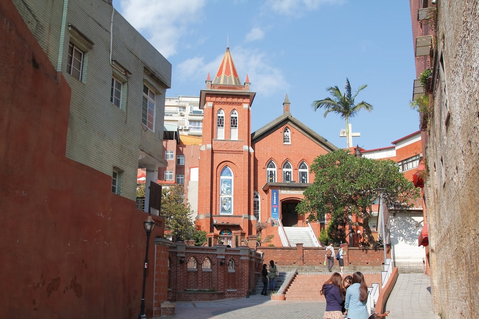 從這下去馬路對面就是淡水教會