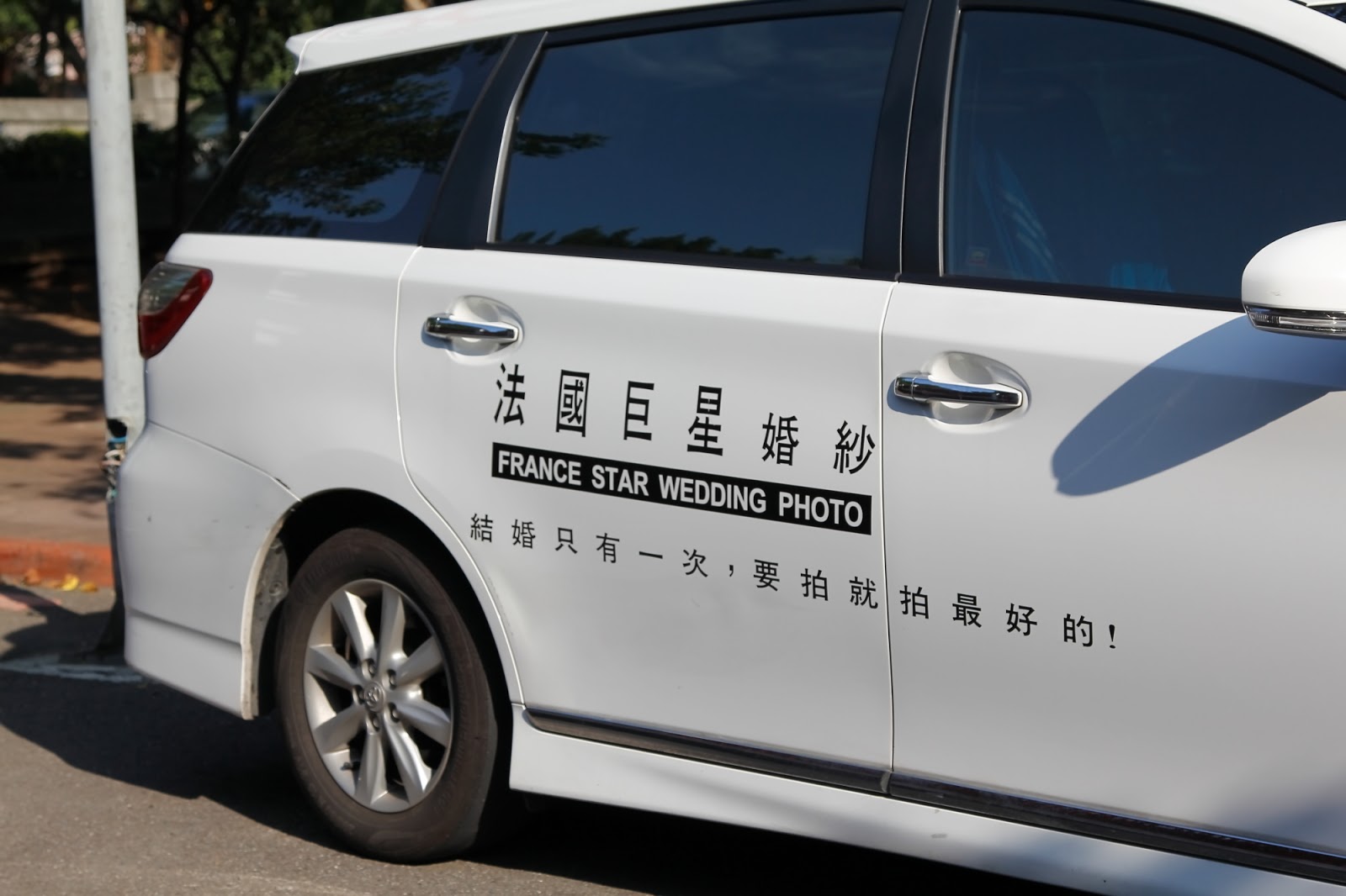 婚紗公司的車子標語下的好阿